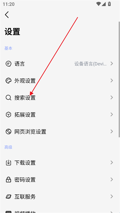 5、点击搜索设置