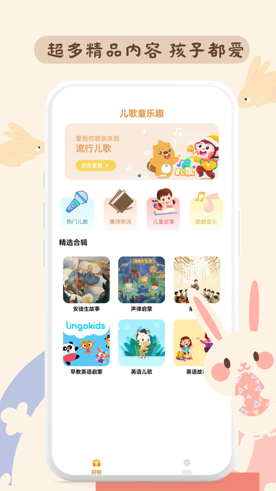 2、耳熟能详的经典,适合儿童传唱的热门改编,都能轻松找到,满足孩子不同阶段和兴趣的听歌需求。