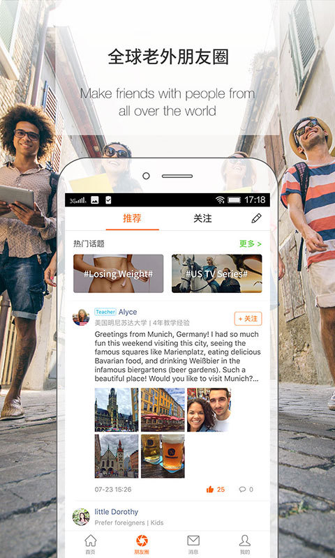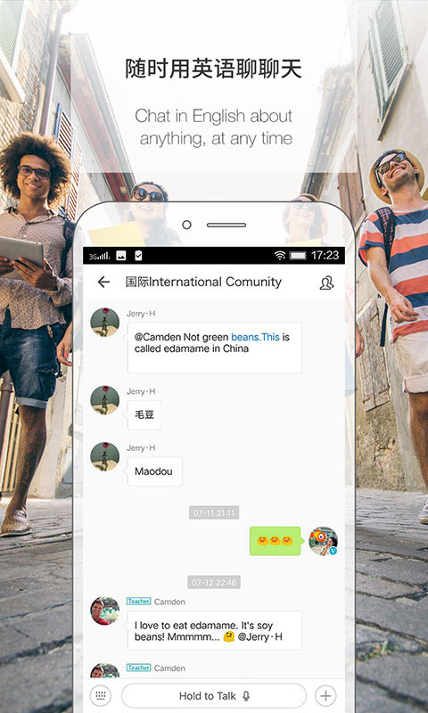 聚集千万英语爱好者,互帮互助,助你提升口语能力!在这里,你可以认识兴趣相投的小伙伴,语音私信,对话交流,共同学习,共同进步!