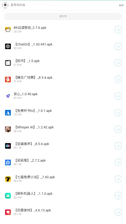 富贵软件以一款聚合了众多应用的软件,以其清晰的分类体系,是每一个用户都能方便的找到所需的资源,内置多个资源,用户可以根据所需要的软件点击相应的分类,非常方便。用户可以通过本软件下载各种移动应用程序,各种移动应用程序应有尽有,所有的应用程序资源全部免费供用户下载,在这里可以高效率的进行下载处理,在这里下载资源真的相当的方便好用。快来下载吧!