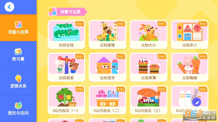 【宝宝巴士思维】依据各年龄段儿童的身心发展规律与认知水平,对“数与量”“几何空间”“逻辑关系”“数运算”四大领域内容进行“进阶式启蒙”,科学打造30+个知识单元、上千个启蒙互动且持续更新。