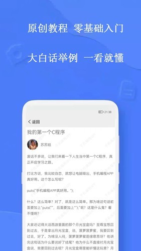 手机编程软件c语言app其实就是手机编程软件,为想要学习编程C语言的用户们提供了许多原创的教程哟,就算是零基础的用户们也不用担心,同样是可以学习精通的,使用大白话举例,让小白也能一看就懂哟,想要学习的用户们就赶紧来下载使用吧。