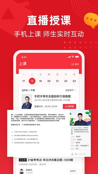 独创演播室直播模式,还原真实课堂场景,在线就能和老师同学即时互动