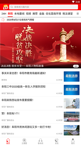 是由阜阳广播电视台开发的一款移动阅读、移动应用的手机终端平台。该平台定位于本土化、可视化、工具化,设有本地要闻、视频、推荐、金融、优化营商环境、税法课堂、教育等栏目,集新闻资讯、公众信息、政民互动、生活查询等服务于一体,利用文字、图片、音视频等立体化传播手段,以新闻信息为核心产品、舆论引导为根本任务、便民服务为延伸功能,打造权威新兴主流媒体。全面迅捷的海量信息咨询、灵活的社交互动交互方式,便捷的消费体验,让今日阜阳新闻客户端成为阜阳获取信息资讯、享受便民服务、参与互动交流的主流平台!