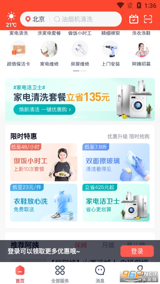不错的家政服务平台,这里有着各种各样的服务,比如月嫂、保洁、育儿嫂、搬家、家电维修等,你可以选择自己满意的人来为自己服务,也可称为月嫂、保洁等服务人员,有需要的朋友可以下载试试。