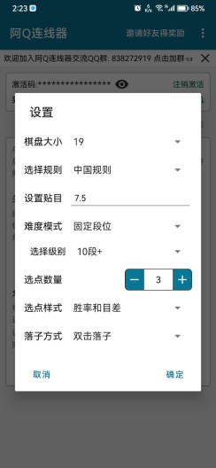 阿Q连线器是一款专为围棋打造的辅助类软件,是手机上使用的通用围棋连线器,软件支持多个平台,可以自定义设置规则,使用简单便捷。相比与其他多了很多实用的功能,可以随时随地帮助你提高自己的围棋水平。使用起来非常的方便,只要开启悬浮窗权限就可以了,对于刚刚入门的用户来说,就可以起到很好的辅助作用。快来试试吧!