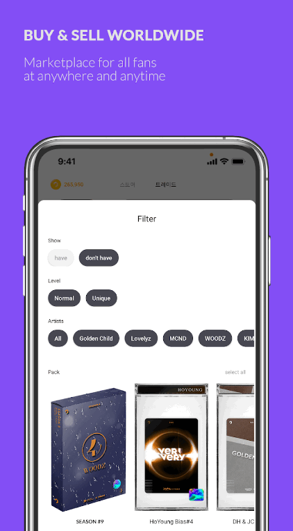 通过收集和展示您的独家照片卡,成为您最喜欢的 K-Pop偶像的超级粉丝(God-Fan)。在 PICKIT社区中展示您的收藏,赢得更多积分和荣誉。