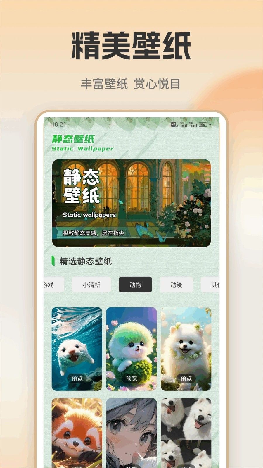 2.按游戏、新鲜、动物、动漫等分类,方便准确找到喜欢的壁纸。