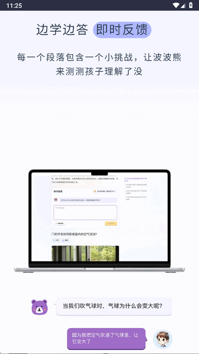1、课后学习助手:孩子在课后可以通过波波熊学伴快速查找问题的答案,并进一步探索相关的知识领域。