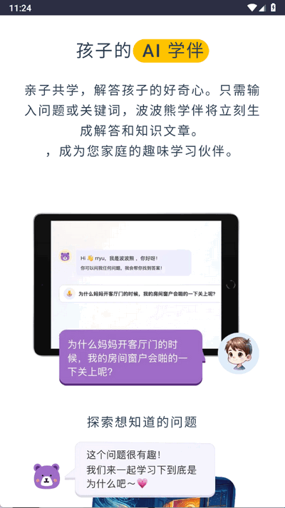 2、好奇心激发工具:通过鼓励孩子提问和探索,波波熊学伴能够培养孩子的主动学习能力。