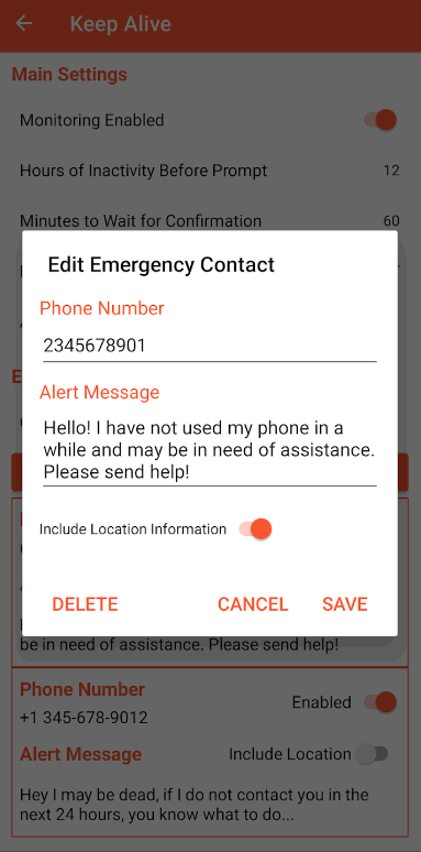 Keep Alive是一款用来检测人们活动状态和健康状况的软件,能够及时判断身体是否出现异常,如果系统检测到用户长时间没有活动或者发生了意外情况,软件就会立即向紧急联系人发出提醒,并且共享实时位置,减少意外的发生,需要的用户快快来下载吧。