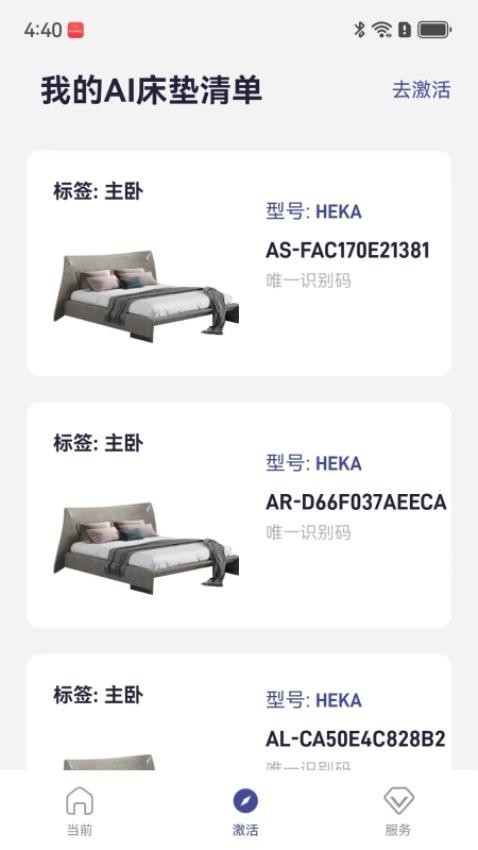 3、对自己的床垫设备可以在线激活,轻松睡眠。