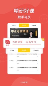小白优课在教研整合与技术创新的基础上推出,以助力百万用户在的公务员、专升本、招警等考试中全面学习,简单粗暴夺高分。