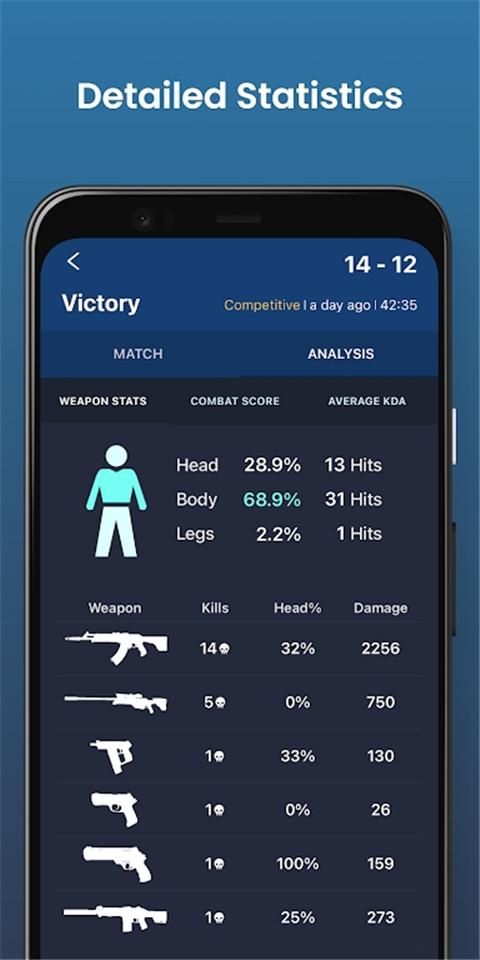 查看每场比赛的详细信息,包括记分板、武器统计数据(如暴头率)。将您的洞察数据与许多其他数据进行比较。