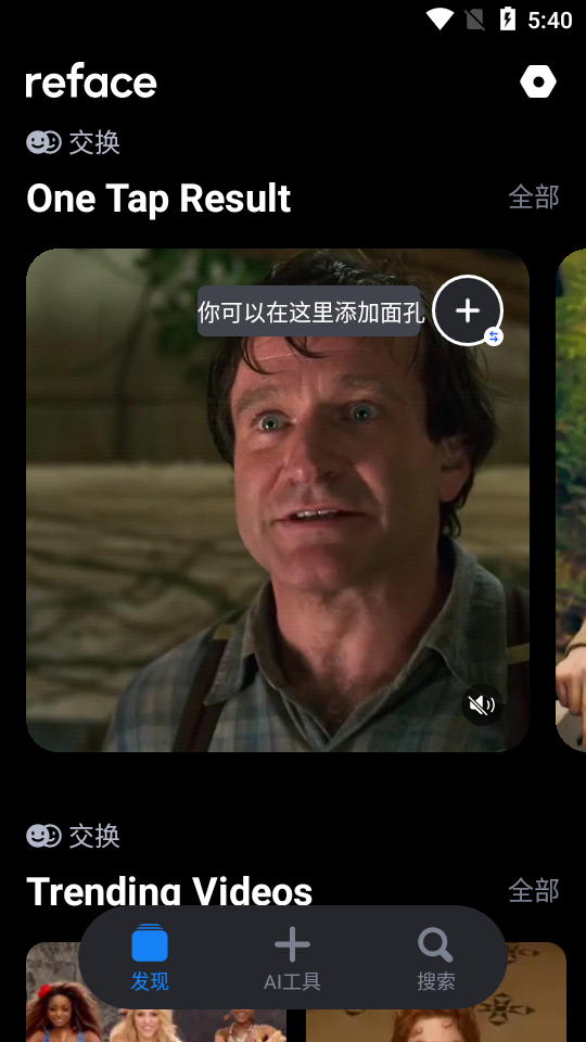 3、每天总是更新新视频、 REFACE每天都会更新名人面孔。帮助用户在选择上更加多样化,以改变他们钦佩的人。