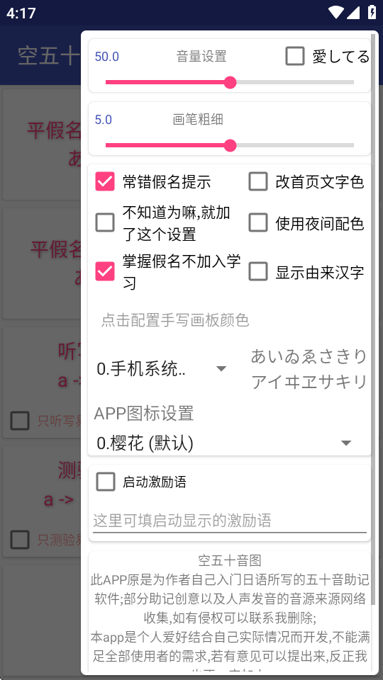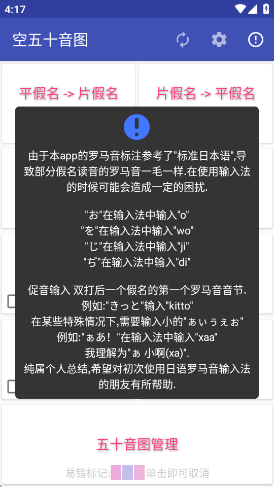 空五十音图是一款日语学习软件,能够帮助日语初学者纠正发音问题,里面有日语标准发音的音频,用户可以跟着练习来改正自己的发音,软件无需登录免费使用,同时占用内存极小,有需要的用户快快来下载吧。