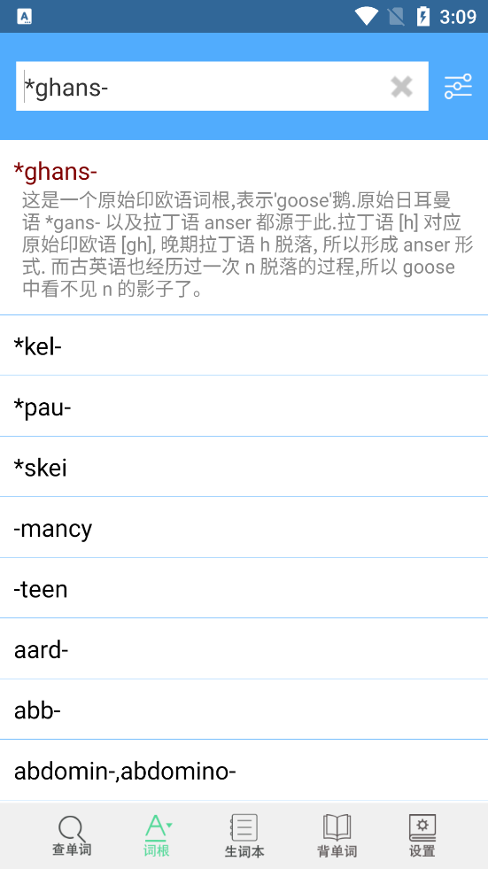 3.在这款词根词缀记忆字典 app根据词根词缀进行了单词的划分,还有详细的讲解提供