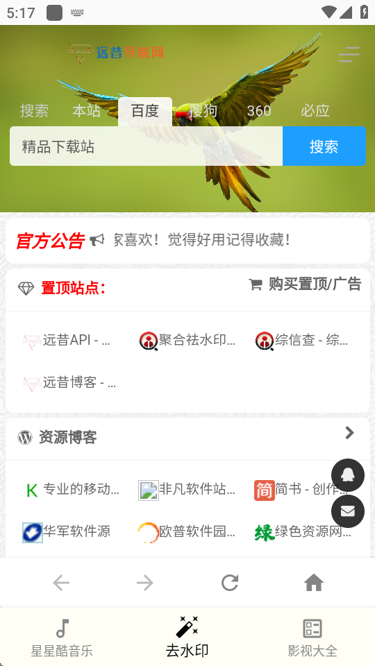 2、各功能模块界面设计简洁直观,操作流程清晰易懂。即使是初次使用的用户,也能迅速上手,轻松完成音乐搜索下载、去水印操作以及影视查找播放等任务,无需复杂学习过程。