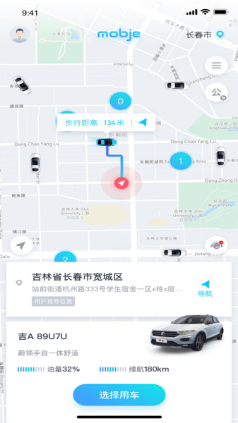2、在地图界面查看身边可用车辆,选择你喜欢的车型,根据导航找到车辆后,用蓝牙或远程控制解锁车门。