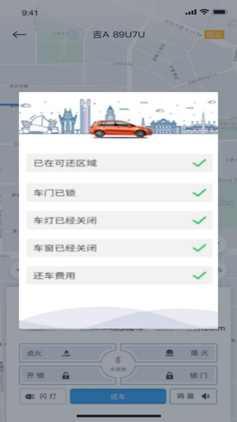 4.还车时在app上操作锁车并结束订单,系统会自动结算费用,夜间用车和参与活动还能享受优惠,记得及时支付。