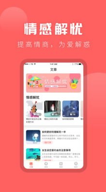 情感专家能够帮助对于感情上有困难的朋友们解开心结,毕竟长时间郁郁寡欢会出现问题的,使用这款app有专业的情感资讯专家为你解答各种情感问题,帮助我们走出困境,需要的用户们就赶紧来下载吧。