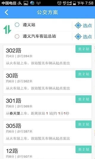 1、换乘查询:不知道公交站名,只需输入地点名或地图选点即可