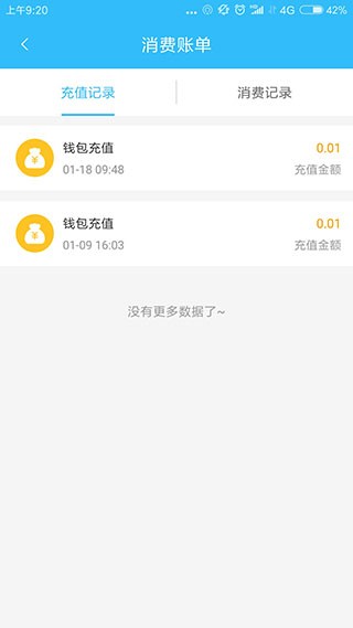 打开App,点击我的,选择消费记录,即可査询充值记录"与消费记录