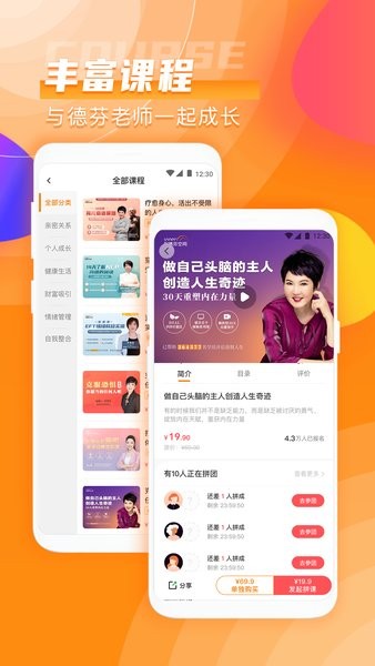 2、大咖频道:张德芬老师、卢熠翎老师等国内外名师亲临,为您打造丰富的个人成长课程。