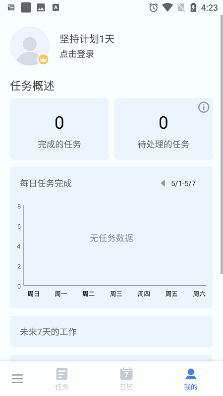 4、查看任务统计,使用统计功能了解每周完成情况和未来七天计划,合理分配时间。
