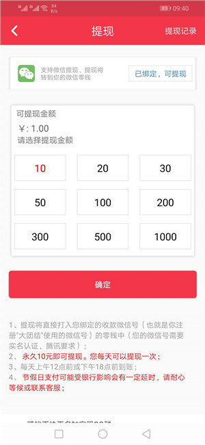 2、在立即涨上赚取的奖励满10元提现,首次提现秒到,之后提现24小时到账