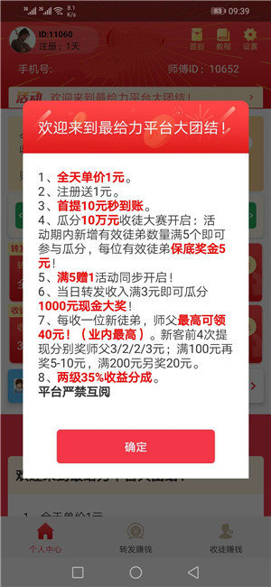3、邀请好友加入,可获得徒弟徒孙30%的收益提成。