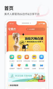 宅美术的海量内容图库、名师作品集、精美教学视频任你采集,激发你的艺术灵感!同时通过直播教学在线解决美术难题,并为你提供美术院校提供历年真题,出题方向,实时更新各大院校招生动态!更有知名画材齐聚平价商城,为你的美术梦助力!