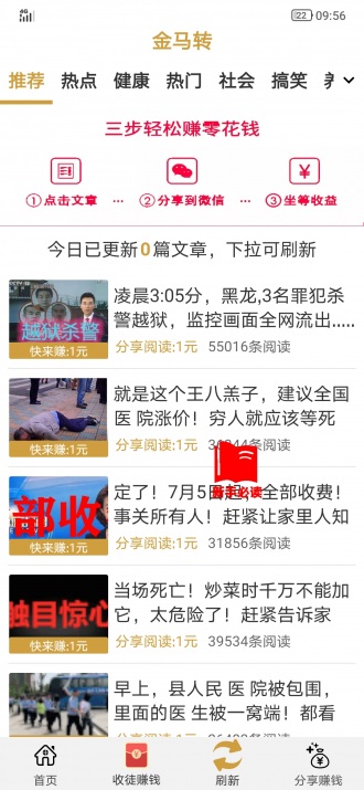 3.转发平台的文章被点击一次可以赚9毛,被阅读越多收益越高