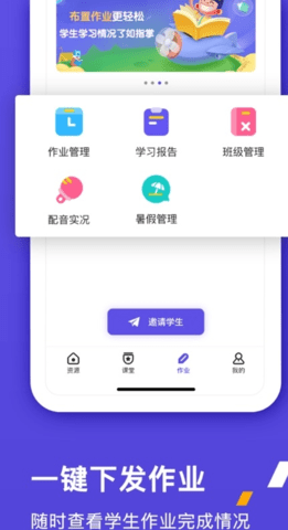 1、可以直接在这里对学生发布作业,便于在线检查学生对家庭作业的完成情况;