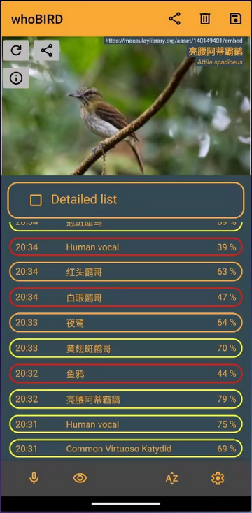 4.尽管应用界面呈现为英文,但其鸟类名称会依据系统语言显示为中文。
