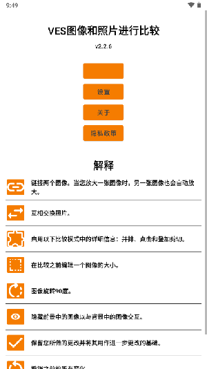 VES图像和照片进行比较APP让照片与图像进行比较的应用工具,它是一个免费简洁易用的工具,支持多种模式来对比两张照片,通过多种比较选项更加轻松方便的查看出软件的差异与不同。