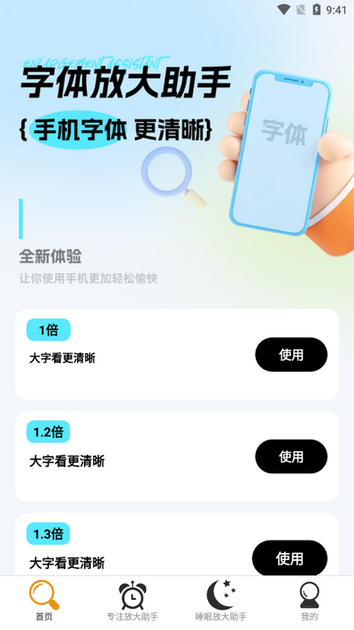 字体放大助手App软件专为广大视力不好的用户们所打造的特色软件,支持全屏、指定区域文字图片放大,点哪放大哪,非常的方便,该软件是完全免费的,且所占内存也是非常小的,非常的方便,看字再也不用那么费劲了,有效的保护我们的视力少受损害,有需要的小伙伴们快来下载试试吧!