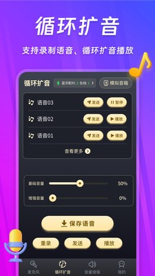 2、循环扩音,支持录制语音、循环扩音播放使用。