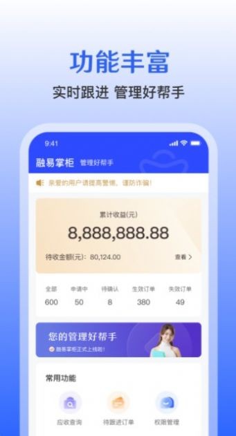 融易掌柜app是一款非常稳定好用的手机管理服务平台哟,让我们可以在手机上轻松的查看到店铺的收款信息,状态清晰直接一目了然,让大家可以进行便捷的管理服务等,对于有需要的用户们就赶紧来下载试试吧。