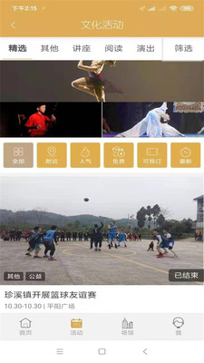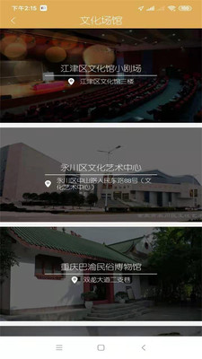 3、是一款提供公众文化生活服务的互联网应用,现汇集重庆的文化活动、场馆资源、文体社团。