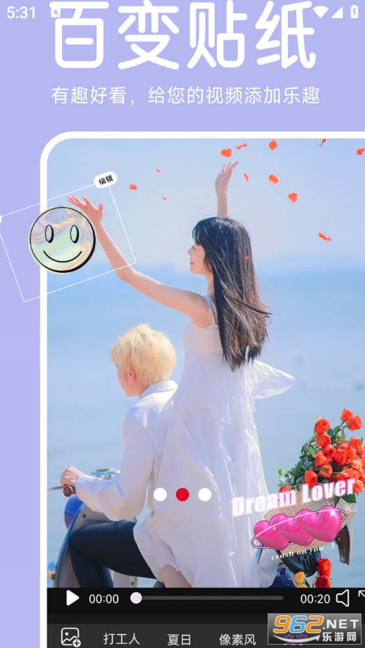 【视频贴纸】提供了很多好看的视频贴纸,让用户可以给视频添加更多的元素;