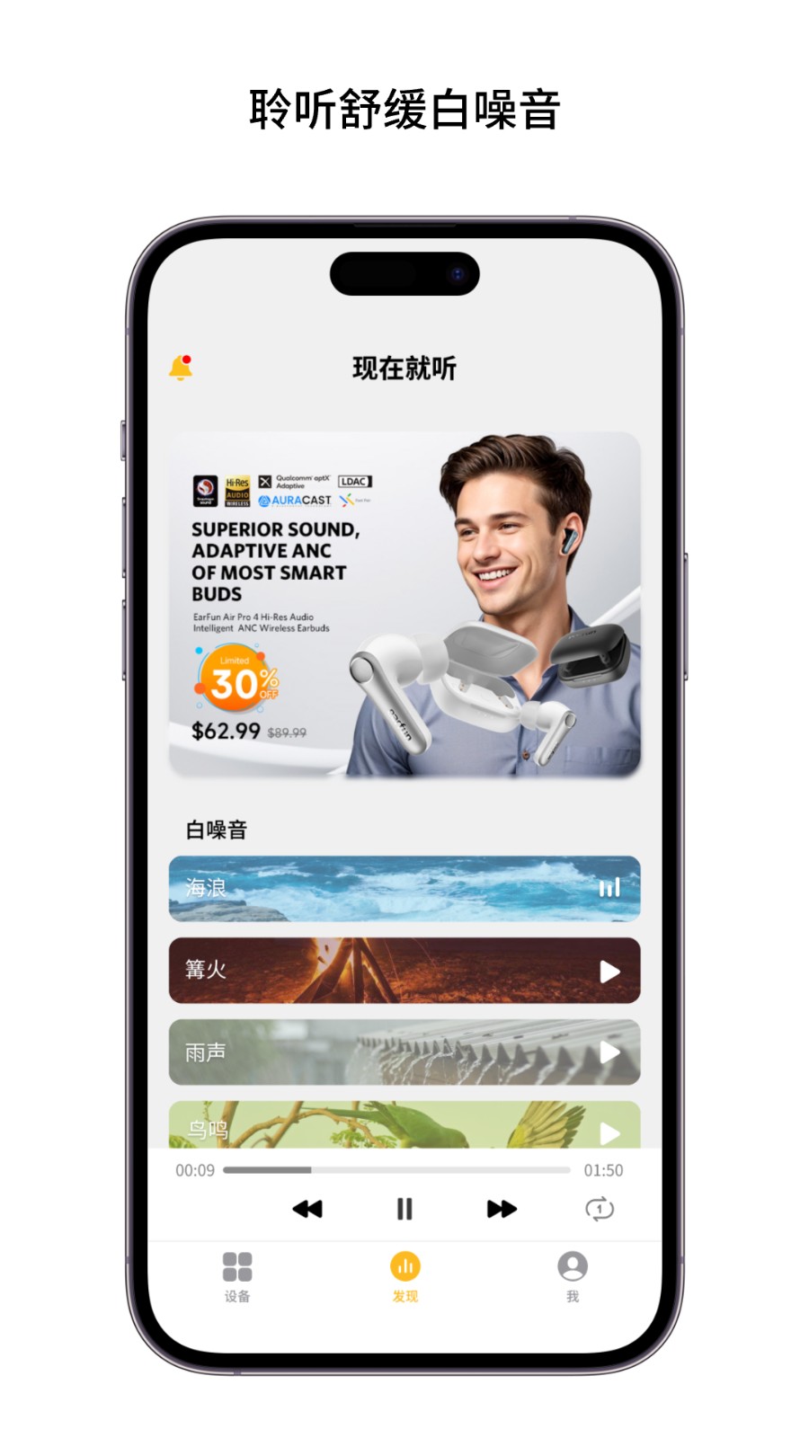 根据自己的喜好,可自行选择喜欢的白噪音收听,享受优质服务。