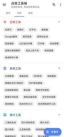 白菜工具箱是一款非常多功能的手机工具箱软件,为用户提供了许多强大的手机功能帮助给我们日常生活中带来了很大的方便哟,非常的有趣好玩又实用,可以说是一款百宝箱神器软件啦,喜欢的朋友们就千万别错过了哟。