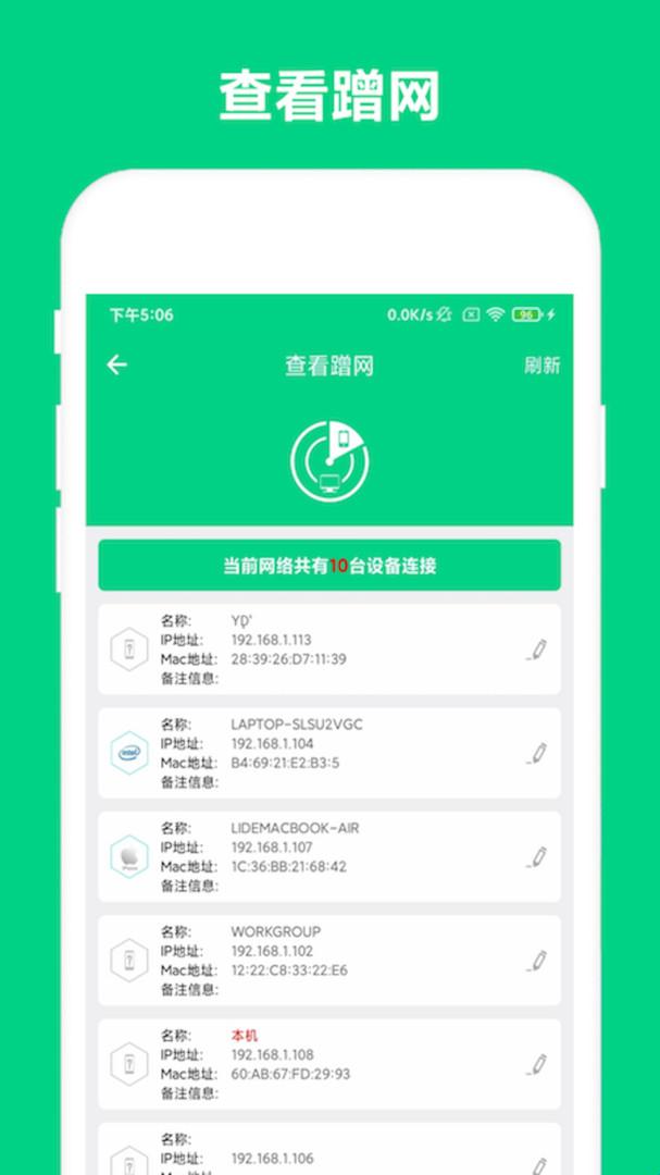 2、在线的设备能够一手管理,可以及时发现陌生的蹭网设备。