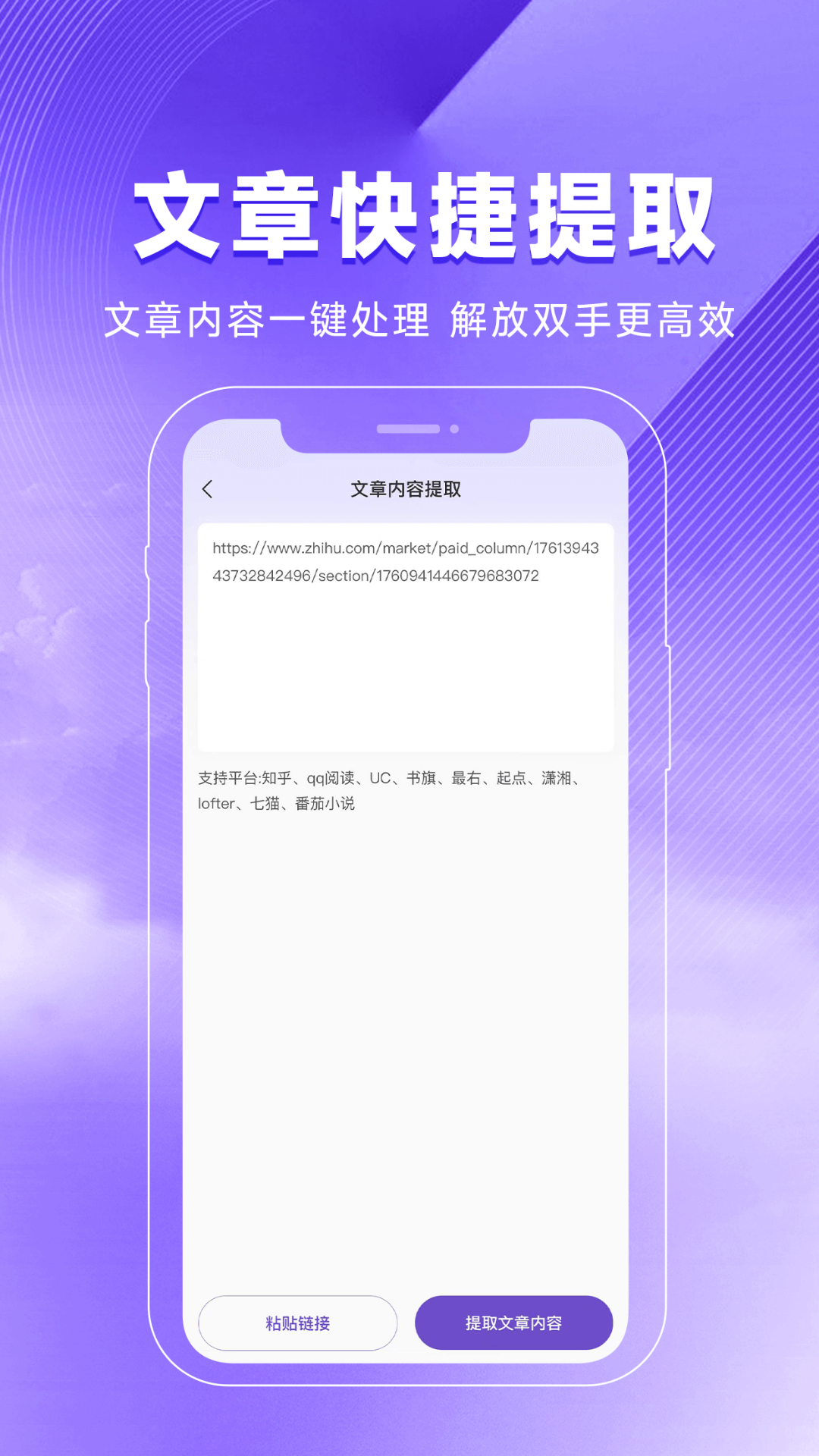 软件支持用户复制多平台的链接到软件上进行文章内容提取。