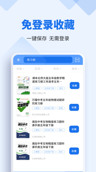 · 离线缓存功能:在有网的时候看过一遍的答案,下次没网也可以直接进入书本看答案