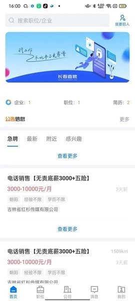 1、长春招聘app提供全职招聘专栏,涵盖各类岗位招聘信息;