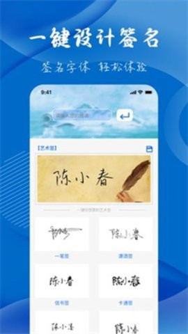 电子签名签字软件是一款非常好用的签名设计软件,软件里面资源非常丰富轮毂,超多设计模板免费供你使用,可以帮助你快速生成满意的签名,非常方便快捷,只需要用户输入名字,即可生成对应的签名,喜欢的小伙伴快来下载吧。