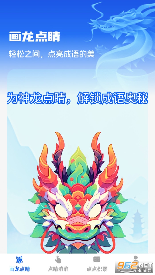 1、通过为龙腾图案点睛来解锁成语,将学习与互动巧妙结合,让成语获取过程更具仪式感和趣味性;