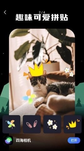 四海相机手机版是一款非常优质好用的相机拍照app,内置唯美特效功能,支持一键自动美颜,还有超多热门潮流贴纸可以使用,帮助用户拍出满意的艺术大片!